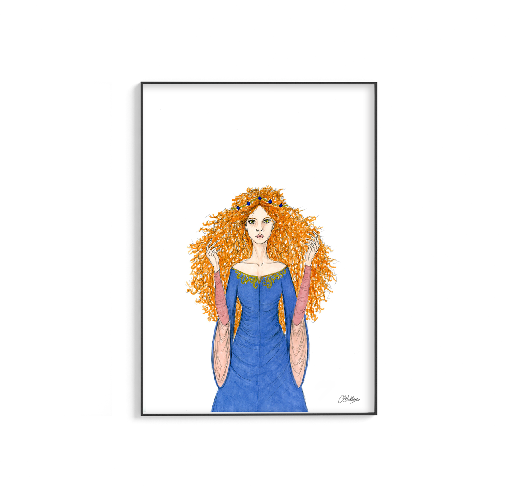 "Sorceress of Avalon" captures the timeless mystique of Morgan Le Fay, rendered in intricate hand-drawn ink. This emotive and serene piece reflects themes of transformation and strength, blending the enchanting with the bold. Perfect for those who seek beauty in folklore and mythology, this artwork becomes a striking centrepiece that resonates deeply with the viewer.